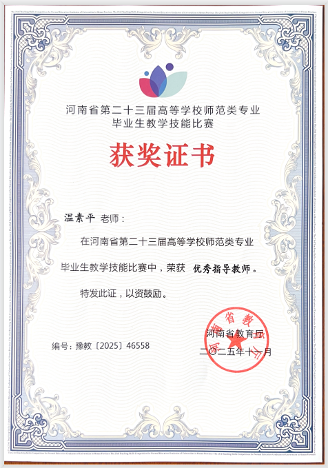 在这场高规格、高强度的省级赛事中,十大亚洲博彩平台排行榜 2022级汉语言文学专业学子表现突出:王佳姝获中学组语文一等奖,刘亦文获小学组语文二等奖,指导教师温素平获评 “优秀指导教师奖”,彰显了十大亚洲博彩平台排行榜 师范人才培养成效。未来,十大亚洲博彩平台排行榜 将持续以赛事为抓手,优化师范生培养体系,为基础教育输送更多高素质师资。