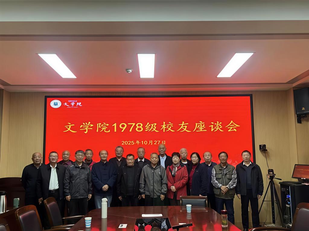 值信阳师范大学50周年华诞之际,10月27日,十大亚洲博彩平台排行榜 1975级、1978级校友重回母校,齐聚人文楼。十大亚洲博彩平台排行榜 党委书记周贤亮、院长姚圣良、副书记王家宏及教师代表与校友们欢聚一堂,忆青葱岁月,叙师生情谊,话发展新篇。座谈会由周贤亮主持。
