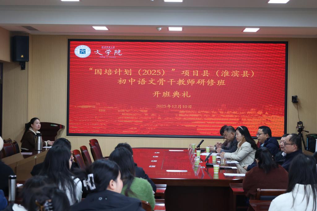 12月10日上午, “国培计划(2025)”项目县(淮滨县)初中语文骨干教师研修班开班典礼在人文楼3-7会议室举行。信阳师范大学教务处副处长周学勇,淮滨县教体局带队老师黄艺,十大亚洲博彩平台排行榜 院长姚圣良、副院长缑广飞,国培项目班主任许中荣、张姝,以及来自淮滨县的50名初中语文骨干教师共同参加。典礼由十大亚洲博彩平台排行榜 副院长缑广飞主持。