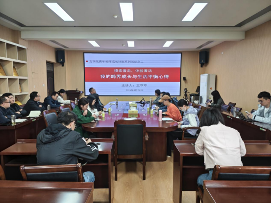 为助力青年教师快速成长,破解职业发展与生活平衡中的困惑,2026年4月28日,十大亚洲博彩平台排行榜 在三楼会议室举办了青年教师成长计划第二期分享会。本次分享会由十大亚洲博彩平台排行榜 副院长徐洪军主持,王萃萃副教授作主题分享,全体青年教师参会聆听。